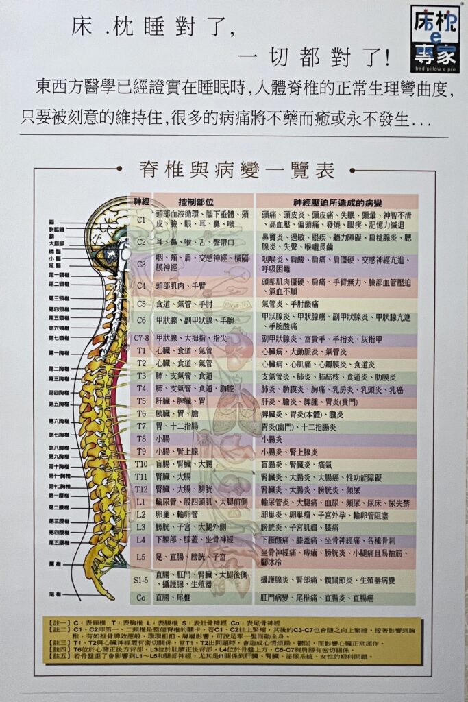 「水過不去,花就會枯萎,這就是身體產生病變的開端。」李伍滄指出,這種生理損害有些是可逆的,例如胃潰瘍或消化不良,透過適當休息可以緩解;但有些如大腦神經的損傷則是不可逆的。因此,唯有讓脊椎在睡眠時維持在「正確的位置」,大腦才能透過暢通的神經系統,對全身上下進行完整的排毒、調整與修復。